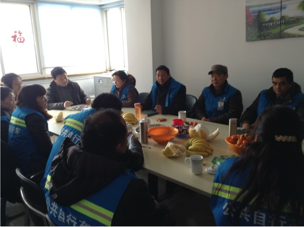 蘇州公共自行車管理中心于2014.02.08.在高新區(qū)百合花公寓會議室舉行了新春茶話會。蘇州公共自行車公司總經(jīng)理首先在茶話會上發(fā)表新春致詞:祝大家新春快樂、身體健康、萬事如意。希望全體員工在新的一年里加倍努力,再創(chuàng)佳績!并介紹了新人事給在座的各位同事。