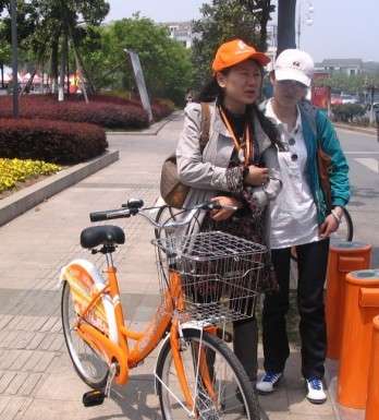 4月25日常熟公共自行車試運(yùn)營,常熟便民公共自行車服務(wù)中心的工作人員向市民介紹如何辦理公共自行車借車卡,并熱情向市民解答公共自行車的相關(guān)疑問,并有市民在街頭試騎公共自行車。