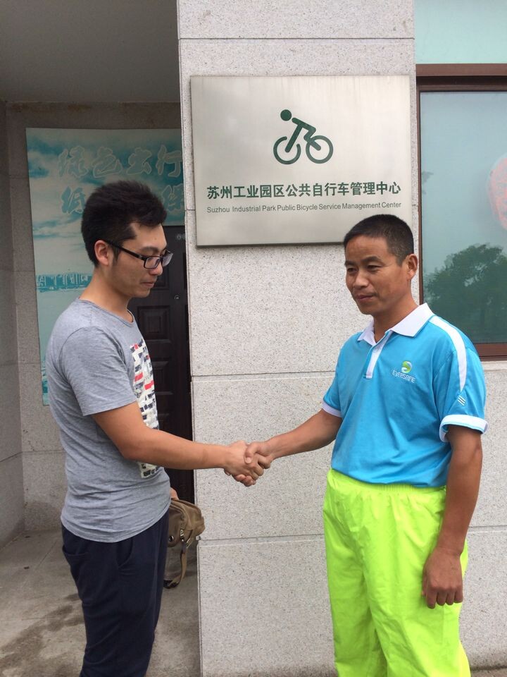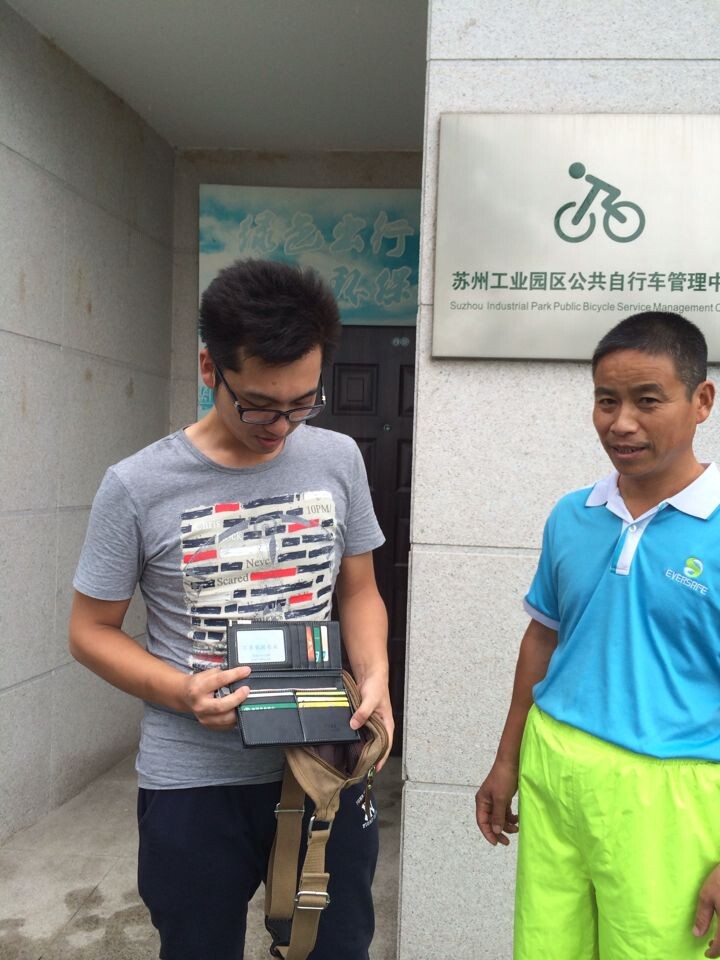 失主認領之后非常感動,他說:“2500元現(xiàn)金是準備繳納房租的,如果丟失,下月房租都不知道怎么辦。非常感謝蘇州公共自行車的工作人員?!?/p>